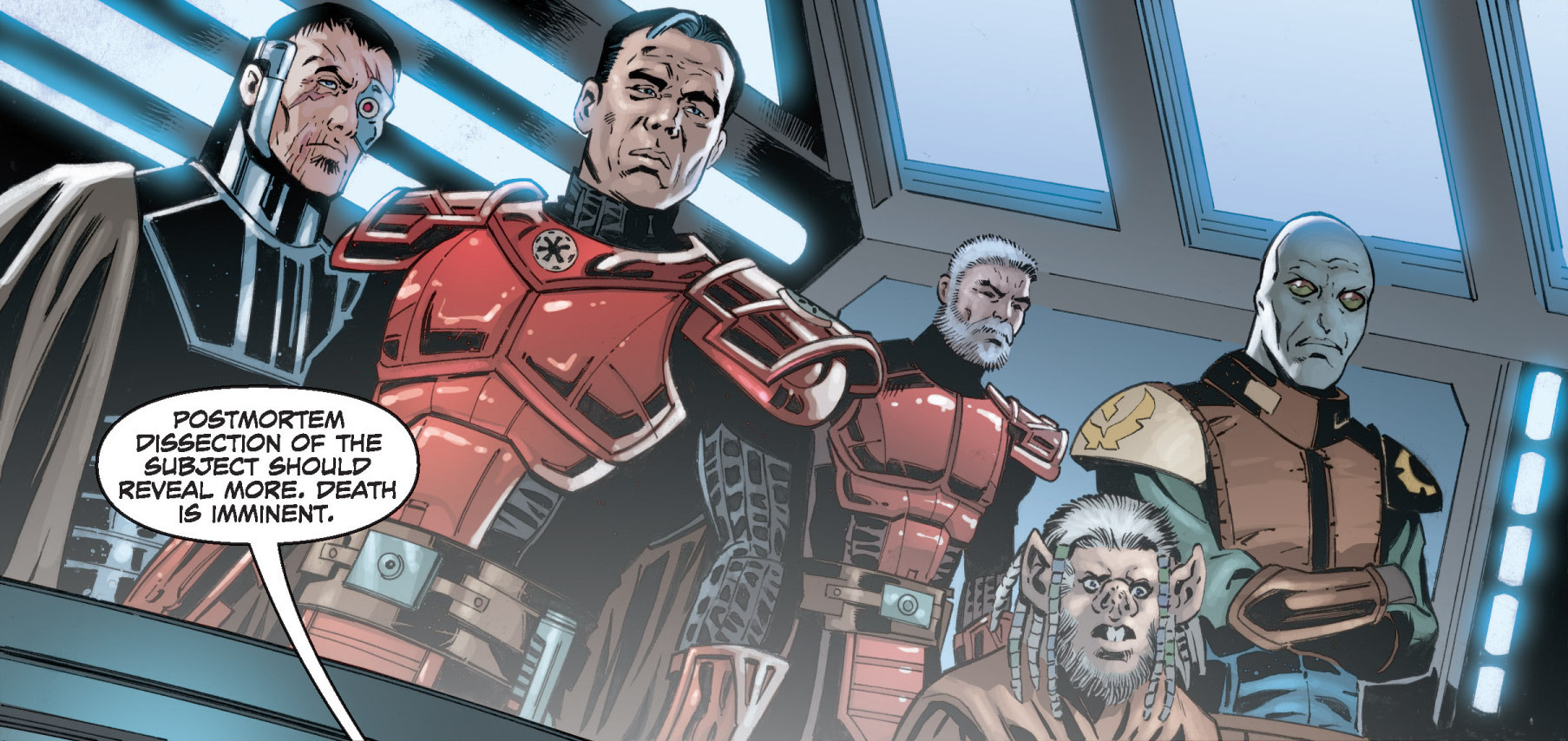 Gar Stazi and his allies learning about Darth Krayt's new Sith troopers.