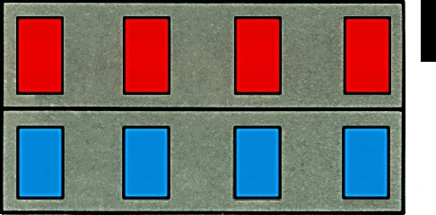 The standard rank insignia of an Imperial General seems to have been four red tabs above four blue, with a single code cylinder at the left shoulder. Although some variations are known, both in the number of code cylinders and the number of rank pips, it is possible that these denoted increased grades of authority relating to specific posting, rather than variations in substantive rank.