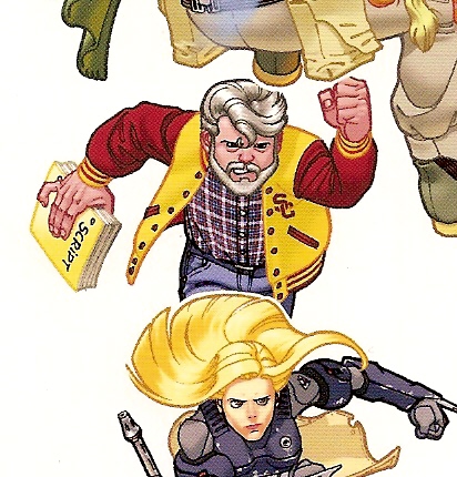 Lucas also appears twice in the Tag & Bink comics. He appears in Tag & Bink: Revenge of the Clone Menace in Dex's Diner and is depicted among the many characters chasing Tag Greenley and Bink Otauna on the back of the Tag & Bink Were Here trade paperback. Lucas also appears in the third part of the Star Wars: X-Wing Rogue Squadron: The Phantom Affair comic.