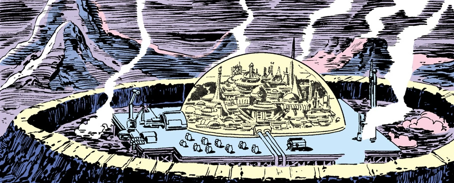 A large force field dome protected the entire station from extreme thermal temperatures and the rivers of lava that would rise up on the volcano's perimeter from time to time. The bedrock that comprised the station's foundations harbored several strange characteristics. When heated, the mineral compounds absorbed ambient light rays, but when it cooled, it released those rays, playing them back; essentially, a natural hologram.[1]