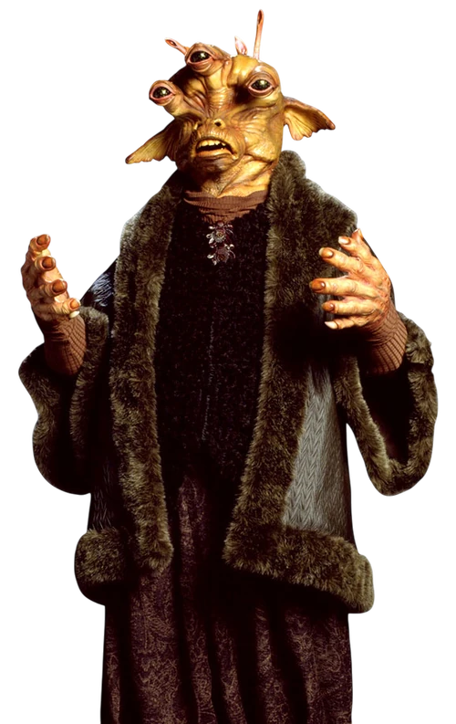 Several Gran held notable positions within the political sphere of the Galactic Republic, including Malastare politicians Ainlee Teem, Aks Moe,[4] and Ask Aak.[17] Senator Kharrus of Kinyen[10] specialized in handling matters of diplomacy, including ransom missions.[2] Philo was a Gran senator from Kinyen[10] who worked with like-minded senators Padmé Amidala and Bail Organa to oppose legislation.[7] During 32 BBY, Teem attempted to run for Supreme Chancellor, but lost to Sheev Palpatine. When a crisis on Naboo was brought to the senate's attention, Moe agreed with the accused Trade Federation representative Lott Dod that a survey should be conducted in order to validate the Naboo queen's claims.[4] During the intergalactic Clone Wars, Kharrus led a ransom mission to the planet Florrum, but was killed when his shuttle was shot down by pirates.[2] Philo was murdered by the bounty hunter Cad Bane when Bane took members of the senate hostage in a bid to free the imprisoned Hutt Ziro.[7]