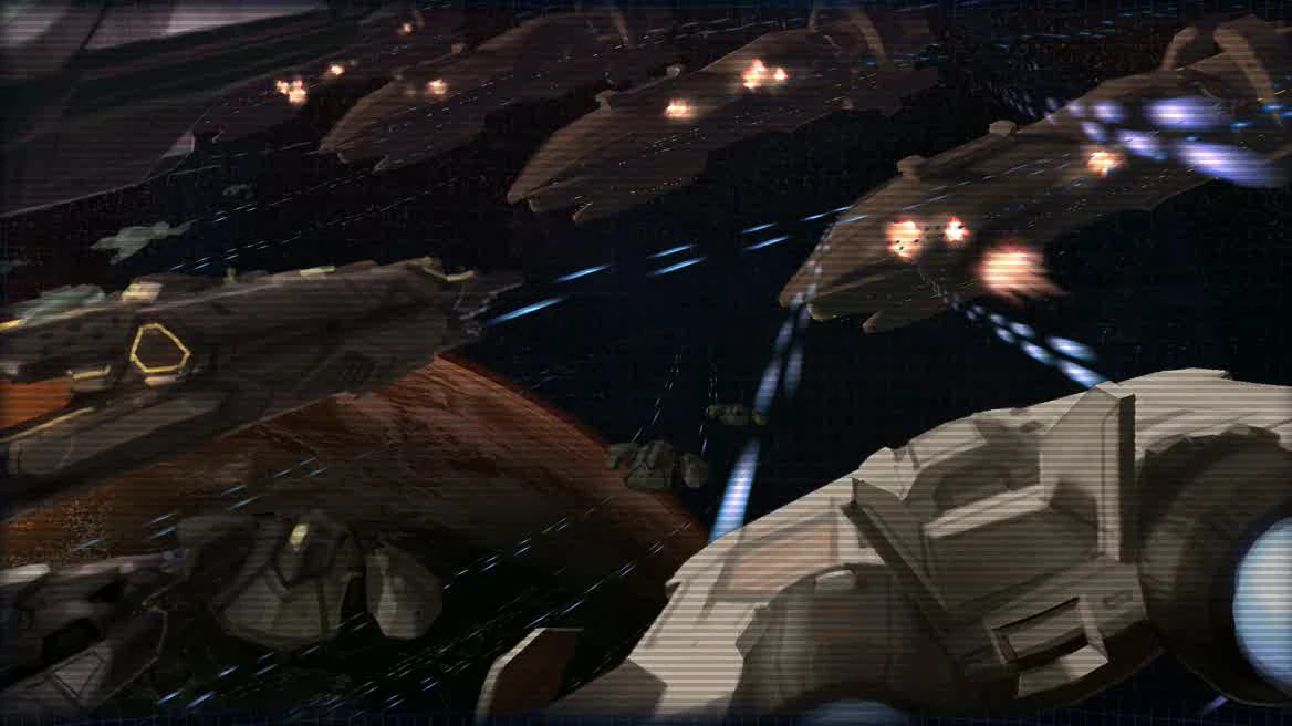 In a move which caught the Republic defenders completely by surprise, a Sith fleet of over 30 warships launched a massive assault on their long-occupied holy world Korriban. The Republic and Jedi defenders quickly fell to the Imperial attack, while Sith Lord Vindican and his apprentice Malgus battled Jedi defenders Darach and Shan on the orbital station.[28]