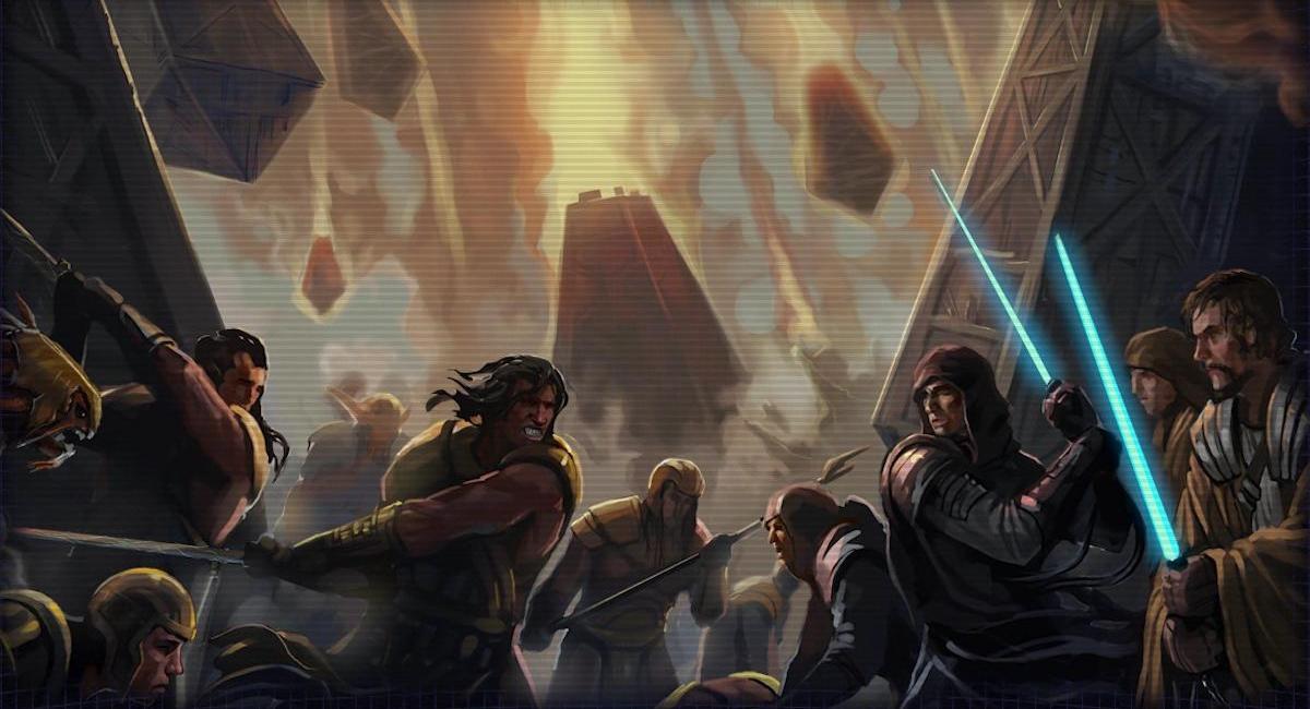 The Jedi Order fights Naga Sadow's forces on Coruscant.