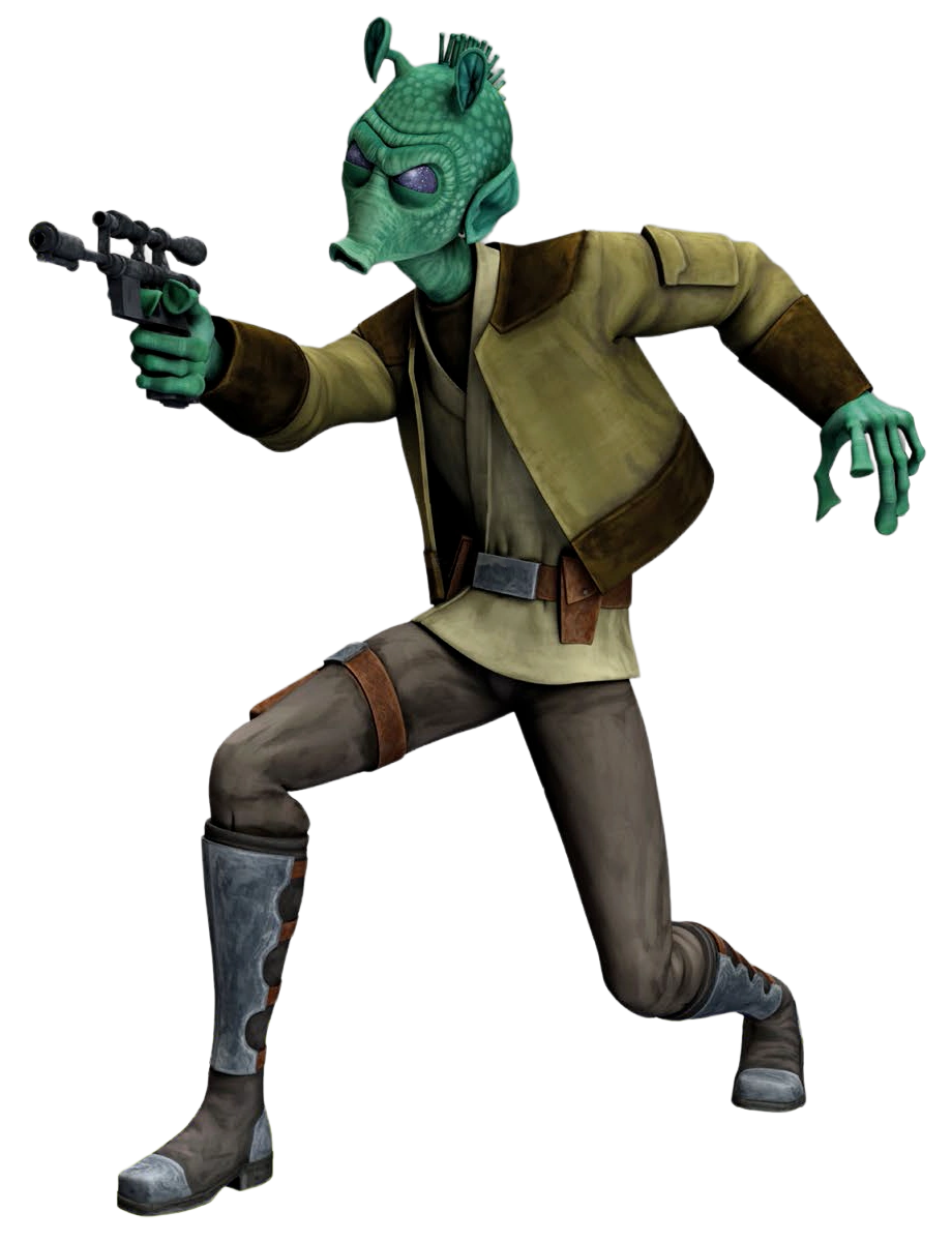 Greedo was a male Rodian bounty hunter who grew up on Tatooine in Mos Espa. During the Clone Wars, he was hired by the Trade Federation to kidnap Chi Eekway Papanoida and Che Amanwe Papanoida, the daughters of Chairman Papanoida, but was forced by the chairman to lead him and his son, Ion to them. He was occasionally hired by crime lord Jabba the Hutt for various mercenary jobs, including the capture of Han Solo, who killed the luckless Rodian.