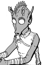 A month and a day passed when the Tetsu Clan was finally tracked down by Navik the Red. In a flurry of activity, Navik's Chattza warriors descended on the hapless population, killing a number and dispersing the rest. Greedo, Pqweeduk, and Neela barely escaped the carnage and fled into the dense jungle, regrouping with Neela's brothers, Nok and Teeku. Nok explained why he had been visiting the ships, as he was maintaining them in preparation in the event that the clan would need to be evacuated. That day had arrived. The panic-stricken Tetsu Rodians hurried to board the three ships as their pursuers tracked them through the jungle. One of the ships was destroyed before it could close its hatch. Greedo's family and the surviving twenty Tetsus that came with them, however, escaped in the Radion, making the pre-programmed jump to Nar Shaddaa, where they hoped to be lost among the myriad of freighter and shuttle traffic that flocked around the heavily-populated moon. There Greedo was exposed to the commonplace aspects of the galaxy, learning the ins and outs of the black market, thanks to the teachings of his friend Anky Fremp, a Skup biomorph. They had been a team for years, stripping Hutt floaters of parts and selling the hardware to the highest bidder. Greedo's social development had grown, becoming familiar with the things that used to be foreign to him.[10][11]