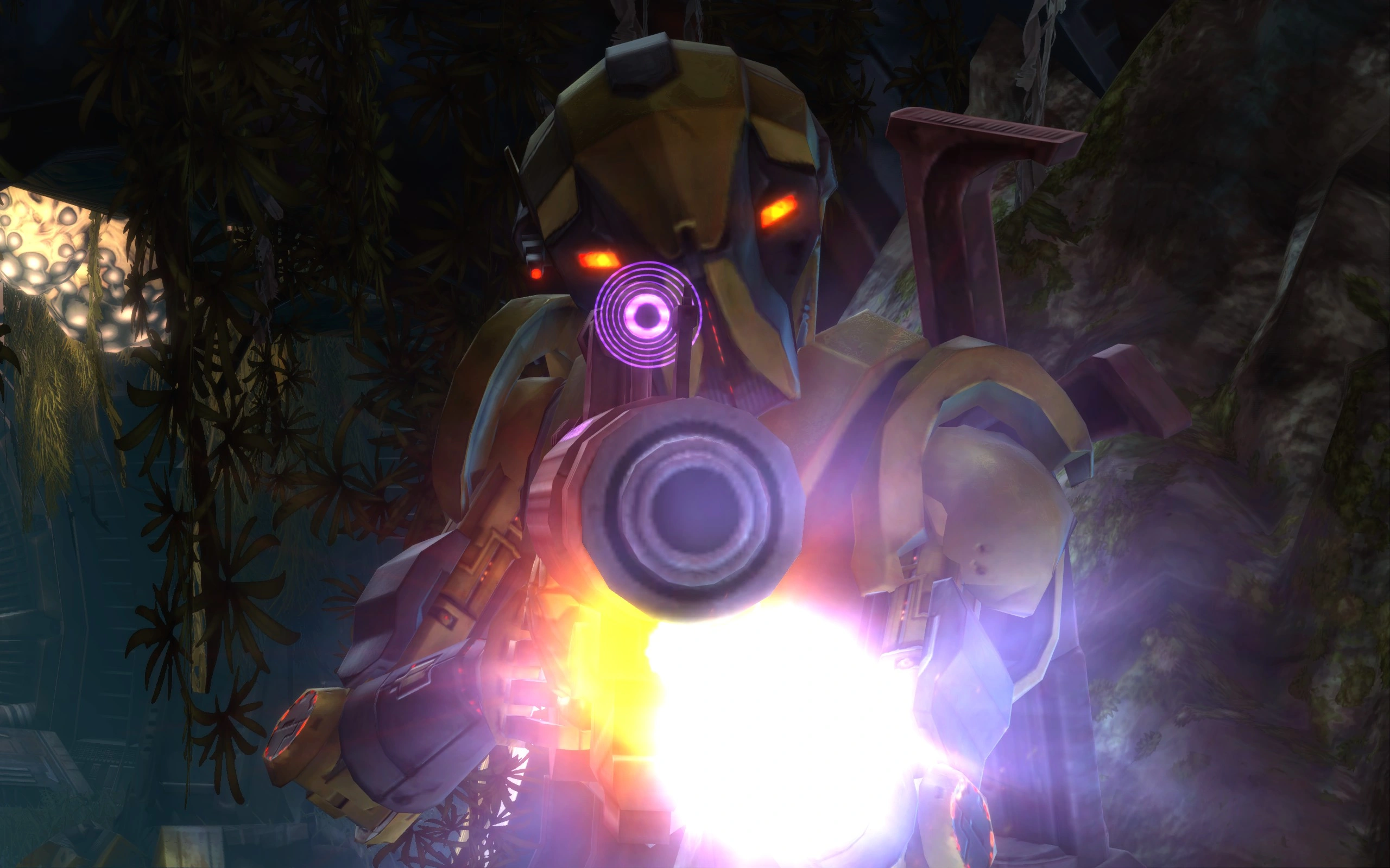At some point, HK-55 woke up in an unknown location, restrained to an interrogation table. He was greeted by an excitable droid named Z0-0M, who released him at his request. Subsequently, a hologram of his captor was revealed to be the terrorist codenamed the Shroud, who revealed that he had copied HK's memory core to give him access to Odessen base, where he was planning on planting bombs to destroy it and the Outlander. The Shroud then signed off, summoning battle droids and mercenaries to subdue HK. Zeeyo chose to defend HK, calling him her friend, and discovered that her chassis contained an impressive array of weapons. Fighting their way through the Shroud's base, the Coil, HK and Zeeyo discovered the Shroud's holorecordings, detailing his unrelenting hatred for the Outlander for ruining his plans of galactic conquest; a museum of droid heads the Shroud had replicated, including a copy of HK-47's head; and a captive Exarch named Malforia. All the while, Zeeyo began experiencing periodic reboots that regularly wiped her memory, which HK theorized was caused by an electrical surge. Additionally, during their confrontation with Malforia, Zeeyo discovers that she's a replicator droid, capable of changing her appearance to resemble anyone she had just met.[11]