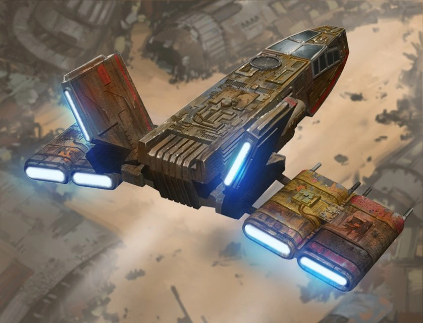 The HWK-290 light freighter was a small, unarmed light freighter that could be flown by a single pilot and co-pilot with room for up to two passengers. It had an angular, dagger-shaped fuselage with two wings mounted to the after quarter of the hull. It was lightly armored but very fast, and highly customizable. The HWK-290 was primarily used as a freighter for high value cargo or as a courier. However, it could also serve as a heavy starfighter when modified to include weapons such as a proton torpedo launcher and heavy laser cannons.[1]