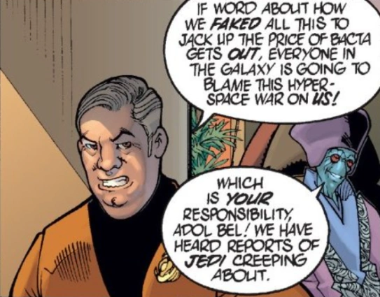 Adol Bel (left) and Hask (right) created a bacta shortage to increase profits.