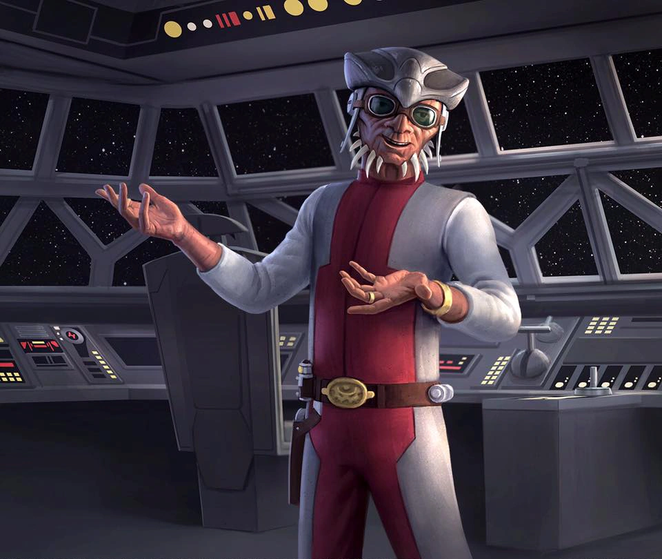 When the rebel recovery team assembled in the Ghost's cargo bay, Hondo tried to dissuade Azmorigan from coming by claiming that the recovery mission was too arduous for the frail Jablogian. However, Azmorigan insisted on coming along and threatened not to let the mission go ahead unless he came. After leaping onto the hull, Hondo, Azmorigan, and the Spectres led by Zeb managed to find a manhole which led inside the ship. Hondo soon encountered Melch, who attacked him for abandoning him. At the urging of Zeb, Hondo admitted that he had contracted the rebels after losing his Ugnaught crew. Hondo managed to win Melch over by offering him a two percent share of the treasure.[43]
