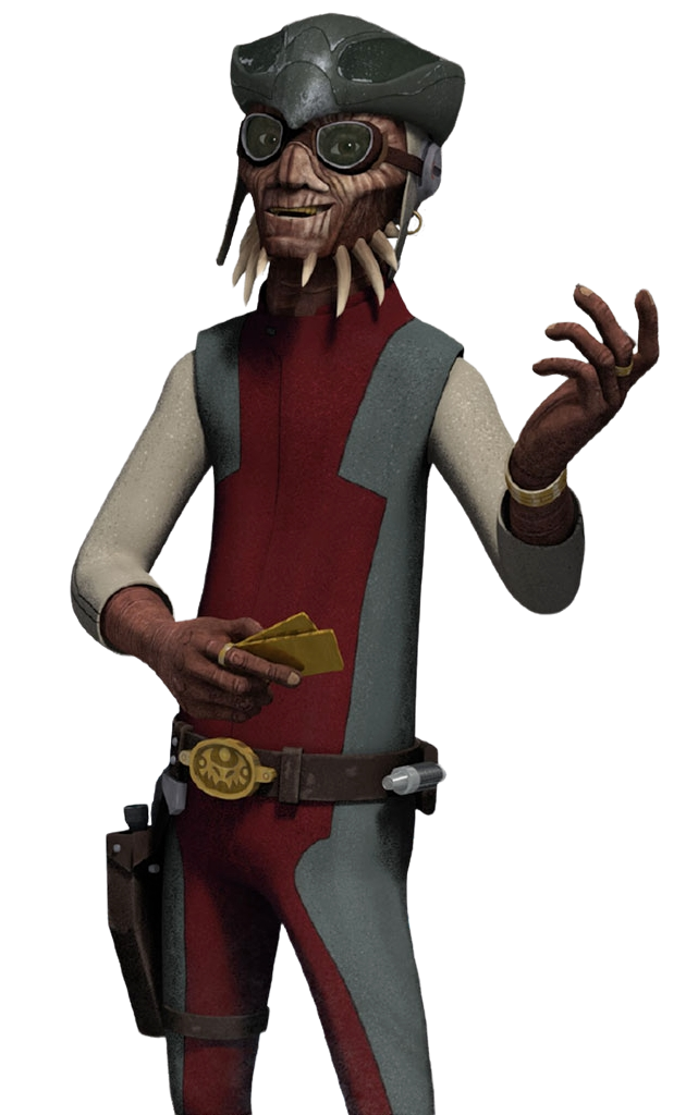 Using his new fleet,[12] Ohnaka conducted raids on backwater worlds pocked with small communities, where his gang faced minimal authority and little resistance and could easily take control of farming harvests and mining operations.[14] Despite having been sold by her, Ohnaka was still fond of his mother and remained in contact with her. At some point, she taught him not to let friends or family stand in the way of profits before swindling him out of a large sum of money.[8] Though Hondo found success as the leader of his pirate gang,[12] he once joined a crew of mercenaries alongside bounty hunter Aurra Sing. Not wanting to cross her, Ohnaka allowed Sing to believe she was in charge of the crew, through which the pair worked alongside and befriended famous names in the bounty hunting business, including Jango Fett and Cad Bane. Ohnaka and Sing formed an on-and-off again relationship before their mercenary careers parted.[6] He also had two pet Kowakian monkey-lizards, Pilf Mukmuk[5] and Pikk Mukmuk.[15]