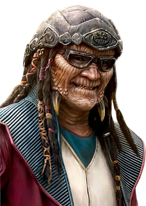 At Disney's 2017 D23 Expo, it was revealed that Hondo would be a part of the Star Wars: Galaxy's Edge park area. Artwork depicted Hondo and Chewbacca making a deal involving the Millennium Falcon, providing the back story for the Smuggler's Run attraction that will allow guests to fly on board the freighter.[69] Hondo appears as an A-1000 animatronic in the pre-show, the second most-advanced figure Imagineering has built after the Shaman of Songs from Pandora: World of Avatar. The figure has 50 different functions and runs entirely on electronics for smoother animation.[70][71] Jim Cummings provided the voice for both animatronic, as well for live-action video material in the Smuggler's Run attraction, while the live-action Hondo was performed by actor Robert Nairne.[72] On August 28, Hondo led the dedication ceremony for the Disney World version of Galaxy's Edge.[73][74]