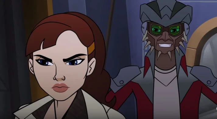Kanata told Ohnaka that she was going to rescue her "boyfriend," confusing Hondo, who mistook her reference to Chewbacca for Solo, and explained that her palace had been targeted by ship thieves recently. Hondo feigned outrage at the ship theft, but Kanata saw through his guise and rhetorically asked what he was doing on Takodana. Hondo replied that he was going to rescue her boyfriend too, but Kanata dismissed her query and told Ohnaka that she had no time to argue and sat in the copilot's seat. Ohnaka asked why she wasn't going to rescue Solo and Chewbacca in one of her ships, and Kanata explained that it was faster to take the ship they were already in and ordered him to take off. Once in the skies above Kanata's castle, Hondo asked where they were heading, and she showed him a device that displayed the location of a tracker she had planted in Solo's drink.[8]
