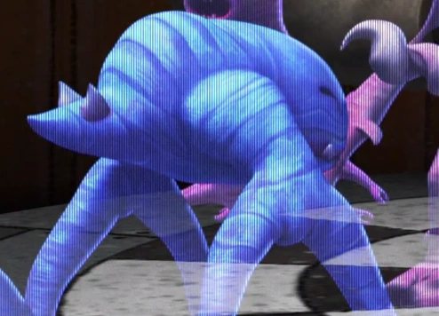 The Houjix were a species of quadrupedal cephalopods whose appearance was used for one of the holographic pieces in the game dejarik.[2][3] They were capable of sending electric jolts through prey, and rumor had it that they were popular pets on the Gran homeworld Kinyen.[2][4]