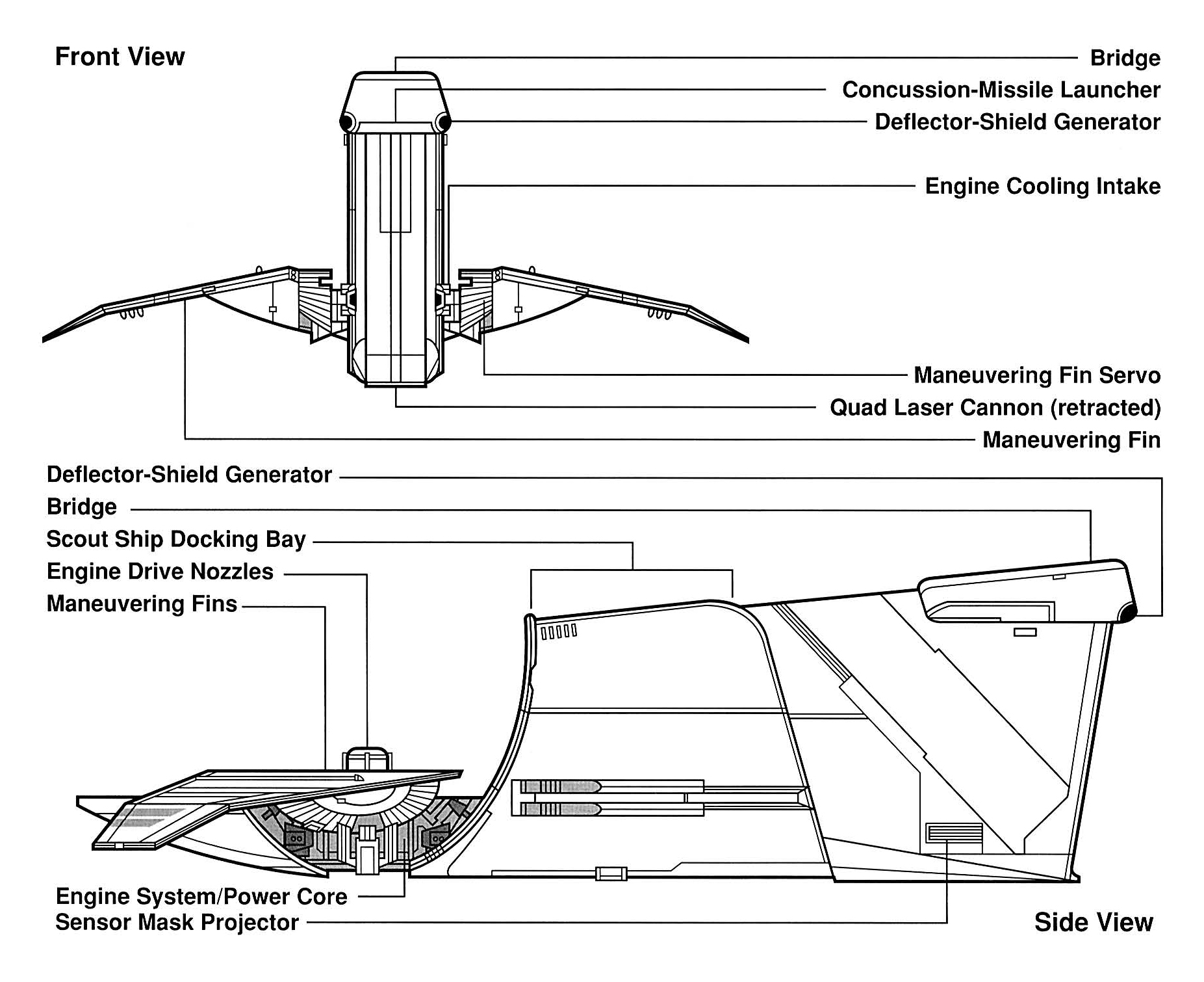 The exterior was smooth and rounded, with an elongated, rectangular hull originally meant for cargo transport. The ship also had a three-deck design and was protected by shields and reinforced armor.