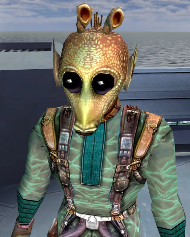 When Hulas heard of Revan's exploits, and his battle with Calo Nord, Revan was given a datapad which told him to meet Hulas on Manaan alone. Once there he tried to persuade him to hunt down Zuulan Sentar the Gran, Lorgal the Rodian, Vorn Daasraad the Gamorrean, Rulan Prolik the shapeshifter, and Ithorak Guldar the Selkath.