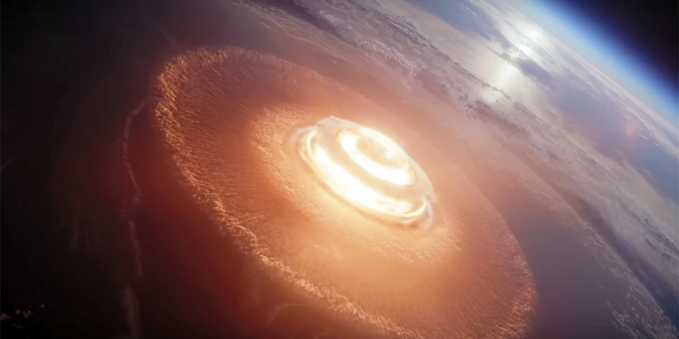 The destruction of the Imperial Center of Military Research during the Battle of Scarif.