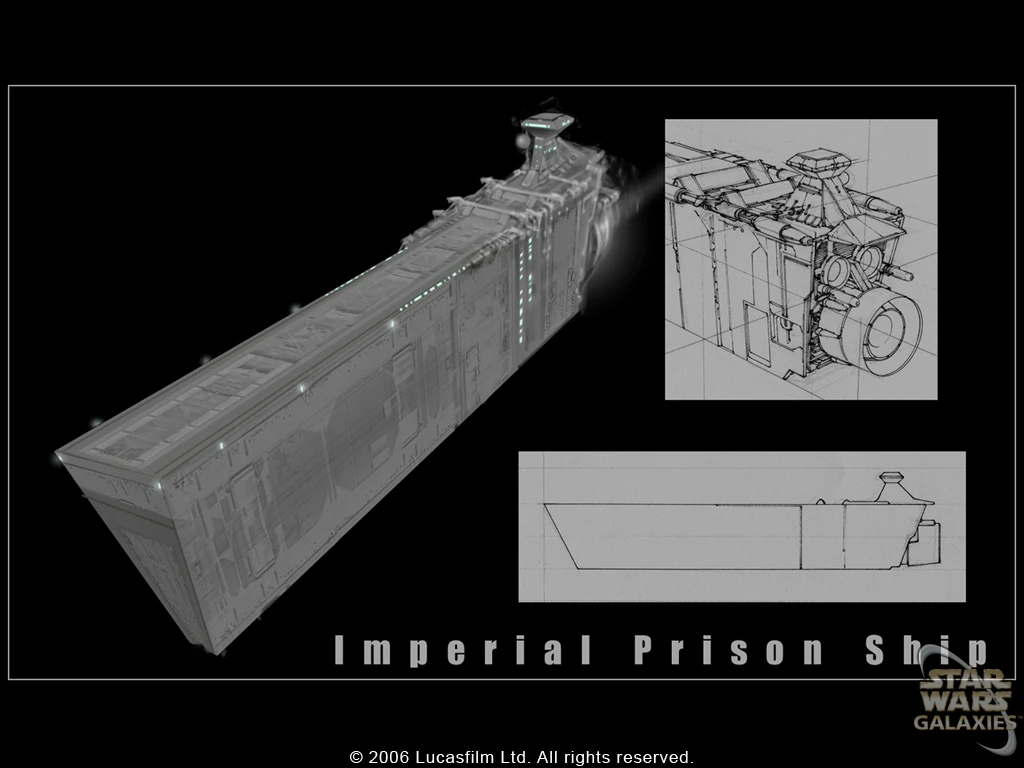 The barges were often used to ferry suspected Rebel sympathizers to penal colonies during the reign of the Empire. One such vessel was the Purge, which broke down in deep space and subsequently was contaminated with a deadly virus from a derelict Star Destroyer.[3] They were also known to transport prisoners to Kessel, Quirt's prison ship was one such ship that transported prisoners to Kessel.[4]