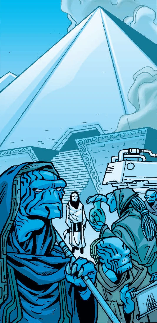 In 31 BBY, the Nightsisters captured a local Star Temple and slaughtered many Kwi. The Nightsisters had intended to access the secrets of the Infinity Gate and use it to destroy Coruscant. However, their plot was thwarted by the Jedi Knight Quinlan Vos, who, in his role as Temple Guardian, redirected the deadly wave aimed at Coruscant back at the Infinity Gate. Only the scattered ruins of the Star Temples were left. The Kwi also disappeared into the deserts.[4]