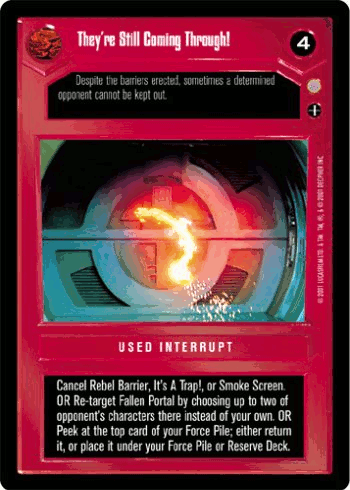 As the blockade started, head of the Security Forces Captain Quarsh Panaka took the precaution of arming their Flash speeders in the event they would need to cover the queen's escape. He also assigned the Security Forces to patrol Theed and maintain order.[3] Soon after, the blockade failed to have an immediate effect in the Galactic Core. Palpatine made several futile attempts to meet with the Trade Federation's Senator, Lott Dod.[11] At one point in the blockade, the Federation tried to kidnap Queen Amidala, but the attempt failed.[5]