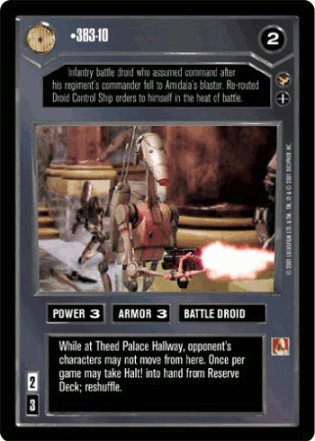 The toxic gas dioxis then flooded the ventilation system in the Jedi's waiting room, and Gunray dispatched a squad of security battle droids to ensure the destruction of the Jedi. After the OOM droids arrived at the room, Gunray contacted them stating the Jedi should be dead by that point before ordering them to dispose of their corpses. TC-14 exited and asked to be excused as she passed by them. The OOM droid leader, OWO-1, then ordered the corporal to go in while they provided cover. Before they could enter, however, Jinn and Kenobi revealed their survival by igniting their lightsabers. The droids attempted to blast them. Jinn and Kenobi, though, proved more than a match for the droids. The commotion did not go unnoticed by Gunray. After learning from Tey How that they had lost communications with the security droid unit, Gunray ordered the bridge sealed off, although his admission to Haako that he'd never dealt with a Jedi before caused Haako to doubt they'd survive the altercation. As a backup plan, they dispatched droidekas, which were more formidable due to their shield generators. Jinn attempted to use his lightsaber to force his way into the bridge, causing Gunray to order them to close the blast doors, believing that would hold them. However, Jinn proceeded to nearly cut through the blast doors to the bridge, much to Gunray and Haako's horror before the latter demanded to know what was taking the droidekas so long. At that moment, the droidekas arrived, ultimately chasing away the Jedi, with one of their blaster fire also detonating the weakened door. Although Haako, who had witnessed this due to the destroyed door, was relieved that the Jedi were no match for the droidekas, How informed them that the Jedi entered the ventilation shaft.[10]