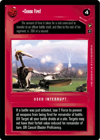 A massive number of civilians across Naboo surrendered immediately, freeing up Trade Federation resources and allowing battle droids to be reassigned to troubled locations. The battle droids were programmed with a set definition of resistance that referred to any refusal to comply with instructions given by the Trade Federation, including refusal to surrender weapons or to leave an injured family member. Controllers in the orbital vessels were sometimes able to interfere with the latter form of resistance, but at other times the droids committed appalling acts of carnage. Many civilians and off-worlders fought back in efforts to escape and later formed resistance movements.[32]