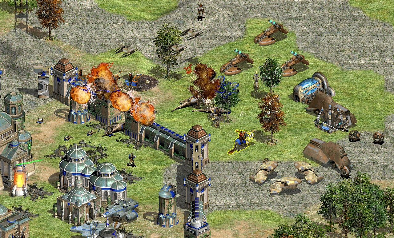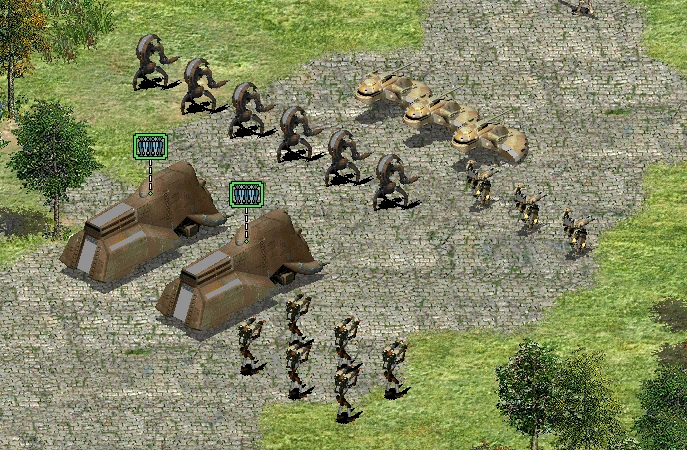 Spinnaker made another unsuccessful attack with a force consisting of eight royal troopers,[1] four heavy Tuskcat Troopers,[3] six heavy V-19 landspeeders, two Champions, and one Steadfast.[1] The droids began repelling the aquatic attacks of the Royal Navy, taking control of the strip of land between their base and the village. OOM-9 used five fighters and several troopers to protect a group of worker droids, who went to the forest path between Spinnaker and the village to build at least one turret and a carbon processing center, after which the droids began to harvest carbon from the trees. By taking control of the road between Spinnaker and the village, OOM-9 ensured constant access to carbon, while also forcing Spinnaker to waste some of its forces attempting to recapture the path, at which point they could be picked off by the droid forces. OOM-9 repeated that strategy to weaken the forces of the Naboo Royal Navy to the west, taking control of a stockpile of nova crystals there by using six fighters and three workers who built two turrets.[2]