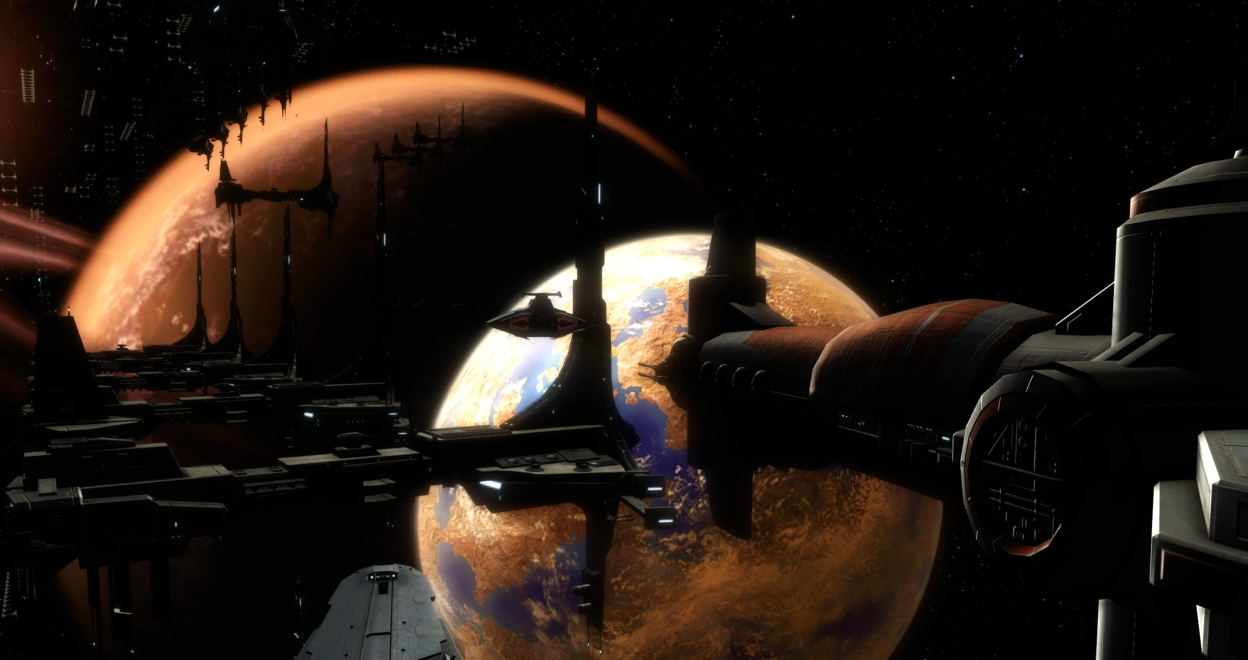 The Gravestone engages the Eternal Fleet in orbit.