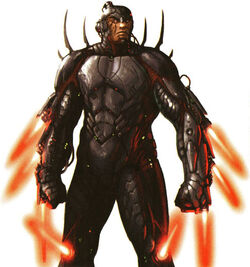Over the years, his mother ordered medical droids to subject Irek to growth hormones and cybernetic stimulation. Under these conditions, Irek grew to three meters in height. Armor plates were installed in his head, torso, elbows, and knees, and the missing portions of his brain, mostly those pertaining to human memory, were replaced with cybernetics. During Irek's transformation, the droids working on him were programmed to not record his presence, keeping the efforts to repair Irek hidden.[35] Irek's subelectronic converter was also augmented, so that it would stimulate the remaining portions of his brain to increase his control over the Force. However, these efforts could not repair Irek fully, and he was unable to speak or remember his past life. Desperate to bring her son back, Roganda created operational programming and prefabricated memories in an attempt to fully restore Irek, at least artificially.[36] Before this programming could be installed in Irek's destroyed brain, Coruscant fell to the Yuuzhan Vong and a groundquake caused ceiling rubble to drop on Irek's suspended animation chamber, also killing one or more of the ysalamiri. Irek, his brain devoid of anything but his implant, his instincts, some combat programming, and some deep-level motivations like killing Jedi and taking over Force nexuses, awoke and killed his mother,[36] cutting her into approximately eight pieces with his lightsabers.[4] Irek escaped the laboratory and began to wander the surface of Coruscant.[41]