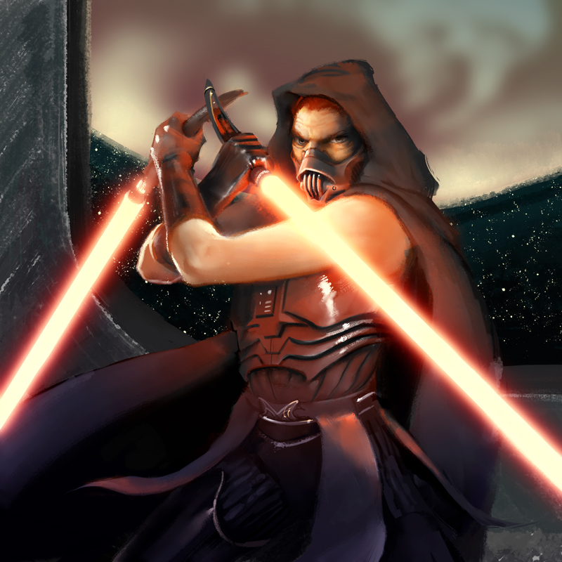 During the Jedi Civil War, many of the Dark Jedi that pledged their allegiance to Darths Revan and Malak's Sith Empire used Jar'Kai against their former Jedi brethren.[28] Many of the Sith following Darth Traya's Sith Triumvirate applied the Jar'Kai form in combat.[29]