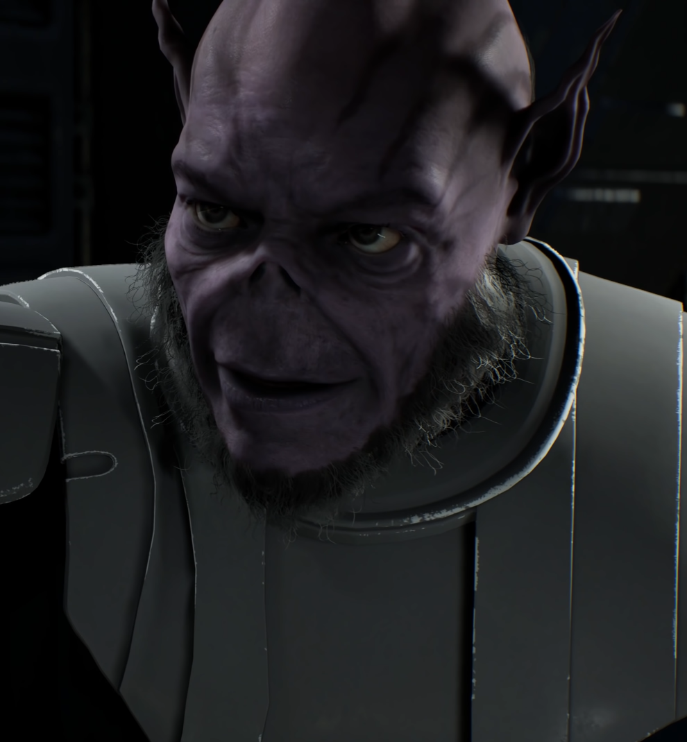 Jaro Tapal was an imposing Lasat male with gray hair, green eyes, and purple skin. Having served as a member of the Jedi Order, Tapal adhered to a firm and disciplined doctrine, the tenets of which he imparted to his apprentice Cal Kestis through their training sessions together. He participated in the Clone Wars as a general and defender of the Republic, noting that while the Jedi did not seek aggression, they would stand against it. He also trusted in the will of the Force; with his dying breath, he told Kestis to trust the Force also.[2]