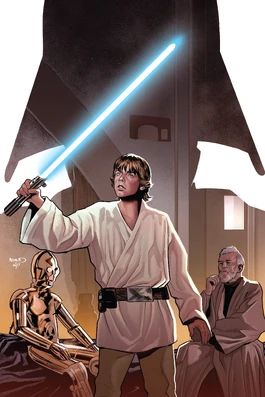 While in the temple, Skywalker felt the presences of Kenobi and Anakin Skywalker, but he was then engaged by Aphra and Vader's two assassin droids, 0-0-0 and BT-1.[137] With the help of his friends, Skywalker escaped these agents.[138] Later, as he again walked through the temple, he heard Kenobi's voice and was warned that he should not have come to Vrogas Vas. Meanwhile, Vader dueled his rival, Commander Karbin, and heard voices from his Jedi past.[135] Though the Sith Lord managed to kill Karbin, Skywalker and his friends escaped the Empire and Vader's personal agents. However, Skywalker was saddened that he would never have the chance to return to the temple, believing he had been close to a uncovering a secret.[139]