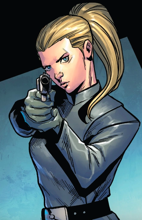 Jeela Brebtin was a human female with light skin, blue eyes and long, blonde hair that was notably tied in a pony-tail.[1] The senior lieutenant was blunt and intense with others; when Dark Three thanked her for saving him, she corrected his used of her name and threatened to kill them,[2] and when Dree commended her shooting during a mission, she called it the point of her maneuver.[1] Brebtin was also very conscious of regulations, repeatedly calling Beilert Valance out when his methods did not follow them, telling Dark Four to focus on the mission when they began chattering,[2] and criticizing Ganem Kahi when he made off regulation comments.[1][8]