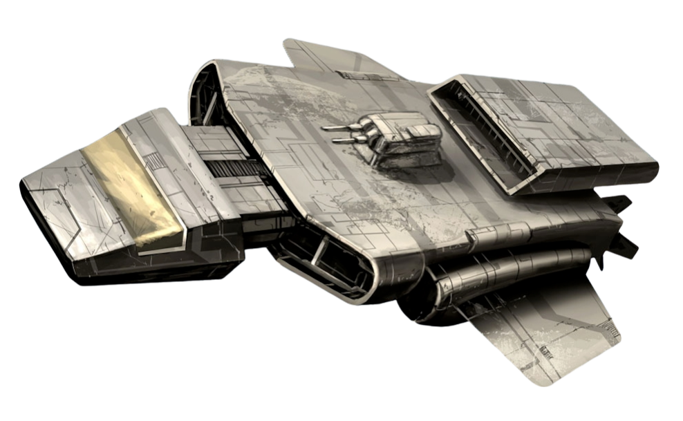 The Kappa-class shuttle featured an aft vehicle bay containing either two AT-RT or AT-PT walkers. Port and starboard exit hatches from the vehicle bay allowed the walkers to disembark via two aft ramps. The walkers provided heavy firepower and armor support to ground troops landing in a combat zone. This concept saw limited employment on the battlefield since the Kappa-class shuttle was replaced with newer dropships.