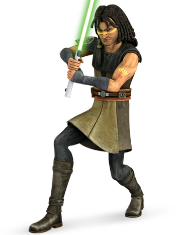 The Kiffar were a near-human species[1] from the planets Kiffu and Kiffex. Although they seemed human in appearance,[3] Kiffar were distinguished by their scarlet blood[2] and facial tattoos, which indicated their clan affiliation on their species' homeworlds.[3] Jedi Master Quinlan Vos, who took part in the Clone Wars, was a male Jedi Master Kiffar.[4] Vildar Mac was also a Jedi Knight during The High Republic.[source?] A small number of the species, including Vos, possessed the gift of psychometry, the ability to read the memories of inanimate objects through touch.[5]