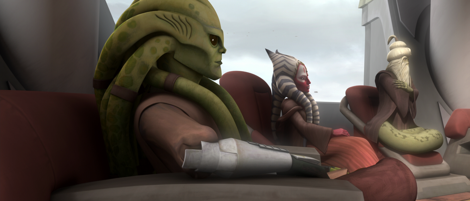 Plo Koon, Kit Fisto, and Mace Windu discuss the events that had transpired at the Citadel.