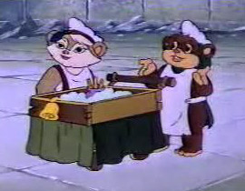 Latara and Wicket disguised as ice-on-a-stick peddlers.