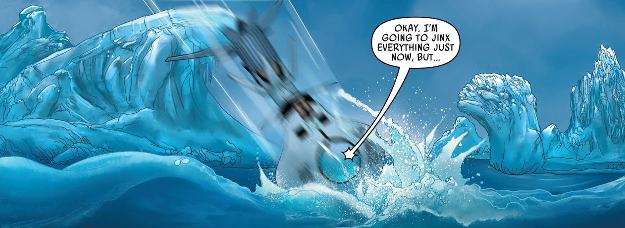 But before Leia, Tala, and Kenobi could escape, Reva and several Purge troopers and stormtroopers caught up with them, Reva motioning for the assembled Imperial soldiers to shoot them. Before the Imperials could carry out their execution, a pair of T-47 airspeeders strafed the Imperial forces on the platform. Leia, Tala, and Kenobi took advantage of the chaos to flee. Path member Sully Stark landed her airspeeder and evacuated Leia, Tala, and Kenobi. On the ride back to Jabiim, Kenobi sat beside Leia, who extended a hand to her rescuer. But Leia's droid Lola beeped and glowed red, the Third Sister having put a tracker in it.[45]