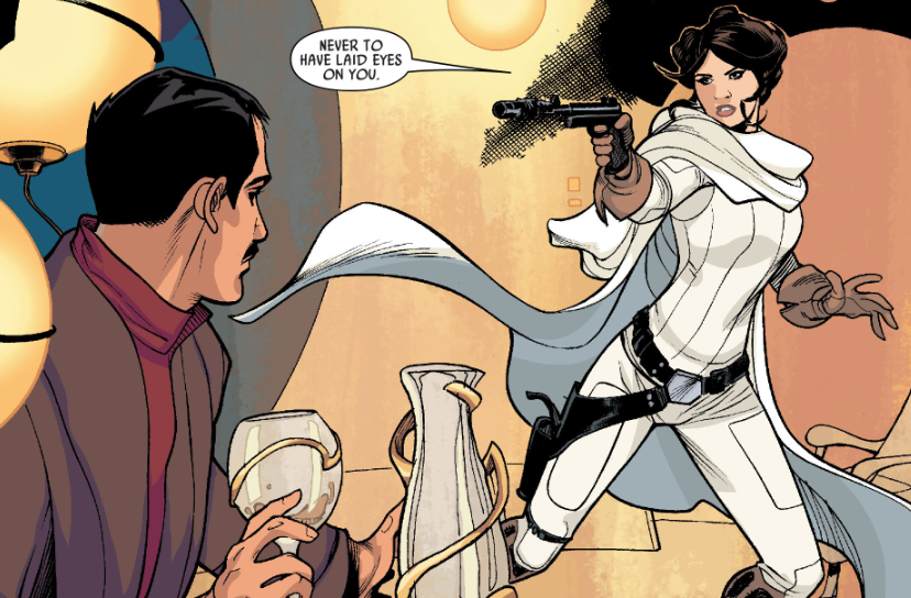 During the ensuing reception, Organa engaged Niano, who berated her for being polite to a droid and called her out for being adopted and thus not a "real Organa." The princess retorted by calling out Niano for being insecure. Later, she was told by her mother to apologize to Niano, and her father reassured her that she was an Organa in every way. Agreeing to apologize to her cousin, Organa instead ran into the nearby woods with Lola.[41]