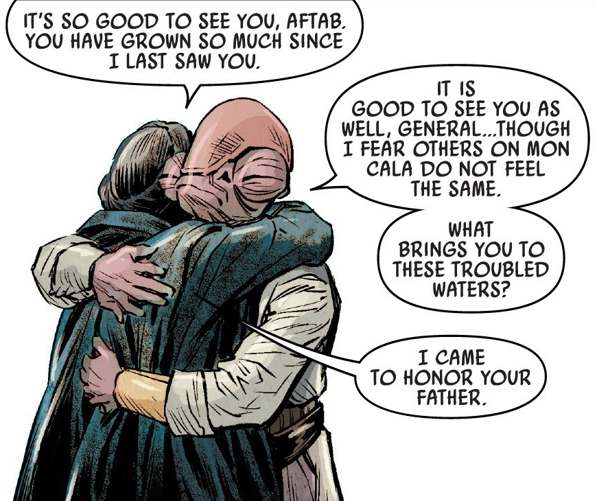 Upon arrival to Jabiim, after being greeted by the relived refugees, Leia and Kenobi ran into Haja Estree. Kenobi quickly sent Leia off to Tala while he spoke with Roken about getting the princess back to Alderaan. Roken explained that he would help however he could, but only after he'd gotten his people to safety; they'd already held off on getting them to safety in order to rescue Leia. Kenobi agreed, promising they'd do anything they could to help.