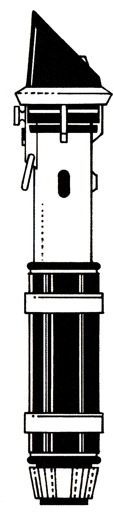 During the filming of A New Hope, the Anakin/Luke lightsaber was made from a Graflex camera side-attach flash, while the Vader lightsaber was made from a Micro Precision Products flash attachment. The handle grips were made of rubber windshield wipers, and D-rings were attached to the bottoms of the units so that they could be worn on belts. The Obi-Wan lightsaber was the most complex hilt at the time. It was assembled from parts of an Armitage Shanks Starlite model Handwheel, Browning ANM2 machine gun booster, WWI No.3 Mk.1 British Rifle Grenade and a Rolls-Royce Derwent Mk.8/Mk.9 Jet Engine Balance Pipe.