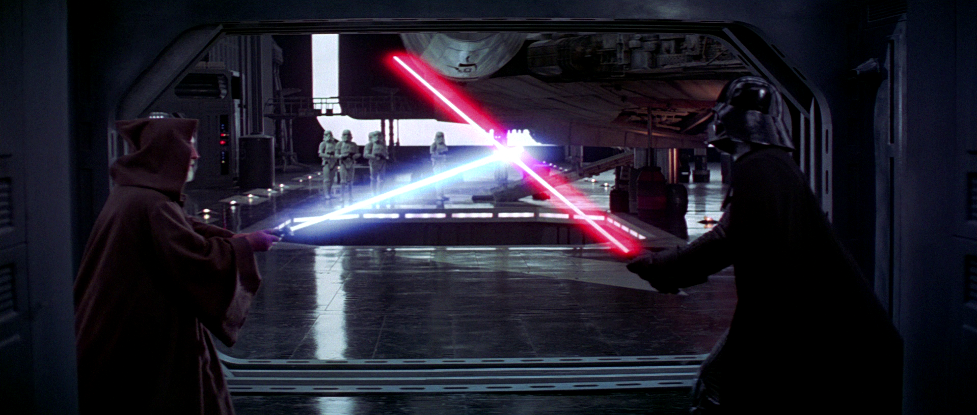 While the usage of lightsabers was originally inspired by rapiers featured in the old serials George Lucas enjoyed, the final choreography in A New Hope looked nothing like fencing. As Jedi and their Sith counterparts were heavily inspired by samurai, the fighting styles utilized were based more on kendo.[58] The slower, more strength-oriented moves of kendo used in the duel also helped mesh with Lucas' concept that it was a battle between what were essentially two old men.[55]