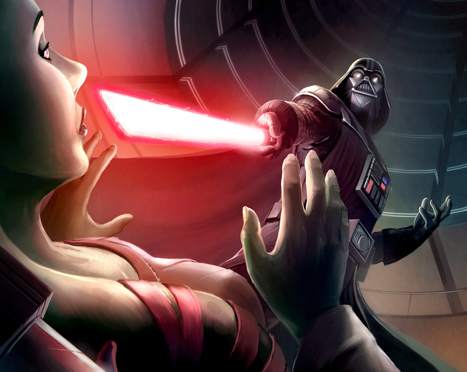 Darth Vader, one of the Emperor's servants and authorized to wield a lightsaber.