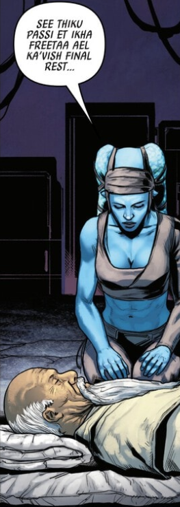 NumidianPrime (@NumidianPrime) on Twitter (post on August 14, 2025): "Had a hunch and managed to source most of this funeral speech Aayla gives in the new Jedi Knights #6 to a fanon Twi'lek dictionary I found on a forum (https://infiniteempirerpg.proboards.com/thread/1190/ryl-basic-dictionary), with some of the words having old Legends grounding and most being fanmade." (backup link)