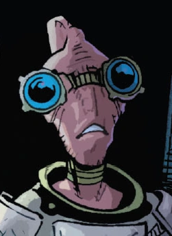 Ola Hest took Lourna Dee before Trilok, a Gormak agent of Pan Eyta's. The Gormak Nihil asked for confirmation the Twi'lek was in fact Lourna Dee, to which Hest threatened to kill Dee if any of the Nihil or scav droids present moved. One of the Nihil told Pan Eyta she could take Hest out, but the Dowutin insisted she not. Trilock warned Pan Eyta, who was in poor health, to stay aboard his ship, but Pan insisted on coming aboard the Restitution to see under Dee's mask for himself. Pan shot and killed Ola Hest, lumbering over to the Twi'lek to verify that she was indeed Lourna. Dee had used decoys in the past, and Eyta felt a need to confirm her identity. Lourna told Pan he did not have to kill the Ottegan. Eyta pointed out that Hest had had a knife to Dee's throat, which Dee specified was the plan. Trilock urged his boss to take Lourna aboard the Nihil ship and go.[1]