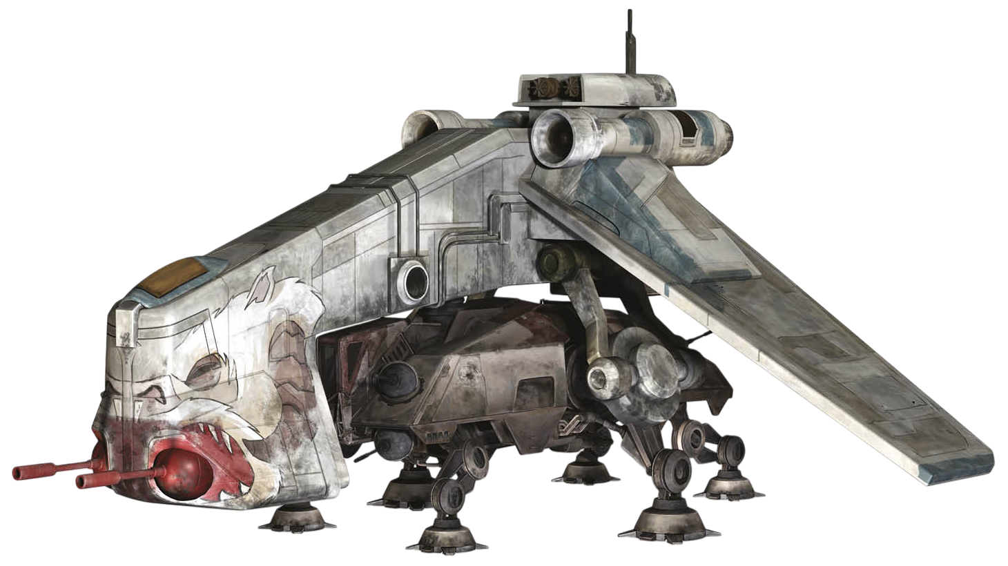 The Low Altitude Assault Transport/carrier, known more simply as the LAAT/c, was a vehicle carrier variant of Rothana Heavy Engineering's Low Altitude Assault Transport series of repulsorlift gunships developed for the Grand Army of the Republic. Beginning with the First Battle of Geonosis in 22 BBY, the LAAT/c saw use throughout the Clone Wars between the Galactic Republic and the Confederacy of Independent Systems and in the years afterward. Manned by a single pilot, the LAAT/c was originally designed to deploy All Terrain Tactical Enforcers onto battlefields, though it was soon modified to accommodate a number of additional vehicles as the Clone Wars progressed, using powerful magnetic clamps to hold payloads in place. The LAAT/c shared the same rear-wing configuration common to all LAAT gunships, though it lacked the undercarriage that the more common Low Altitude Assault Transport/infantry used to carry clone troopers into battle, and also lacked the heavy armament of its cousins.