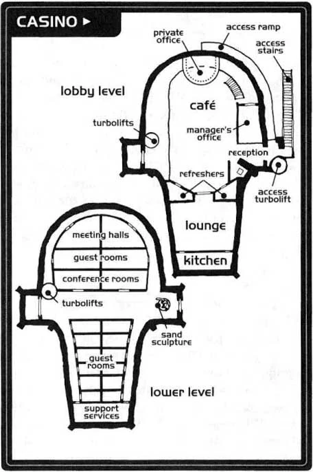 The Lucky Despot was the scene of the wedding reception between Valarian and her husband, D'Wopp. Many citizens of Mos Eisley were in attendance, including Wuher and Labria, with music provided by the Modal Nodes. A fight between the bride and groom broke out, and Imperial stormtroopers arrived, presumably tipped off by Jabba, to break up an illegal gambling operation.