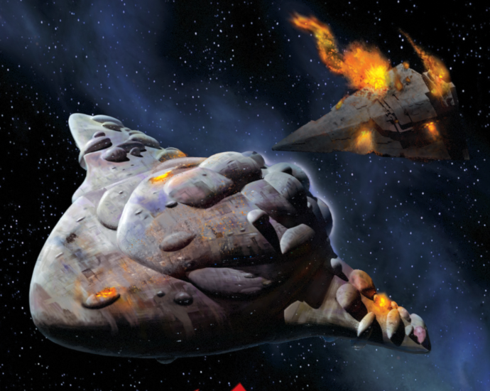The entry of the Mon Calamari into the Alliance ensured that the undergunned and outnumbered Rebel fleet would possess the firepower to deal with Imperial-class Star Destroyers, and when grouped, even heavier combatants. This was shown during the climactic Battle of Endor, when a flotilla of Mon Calamari ships attacked the massive command ship Executor and brought down its shields.[5][10]