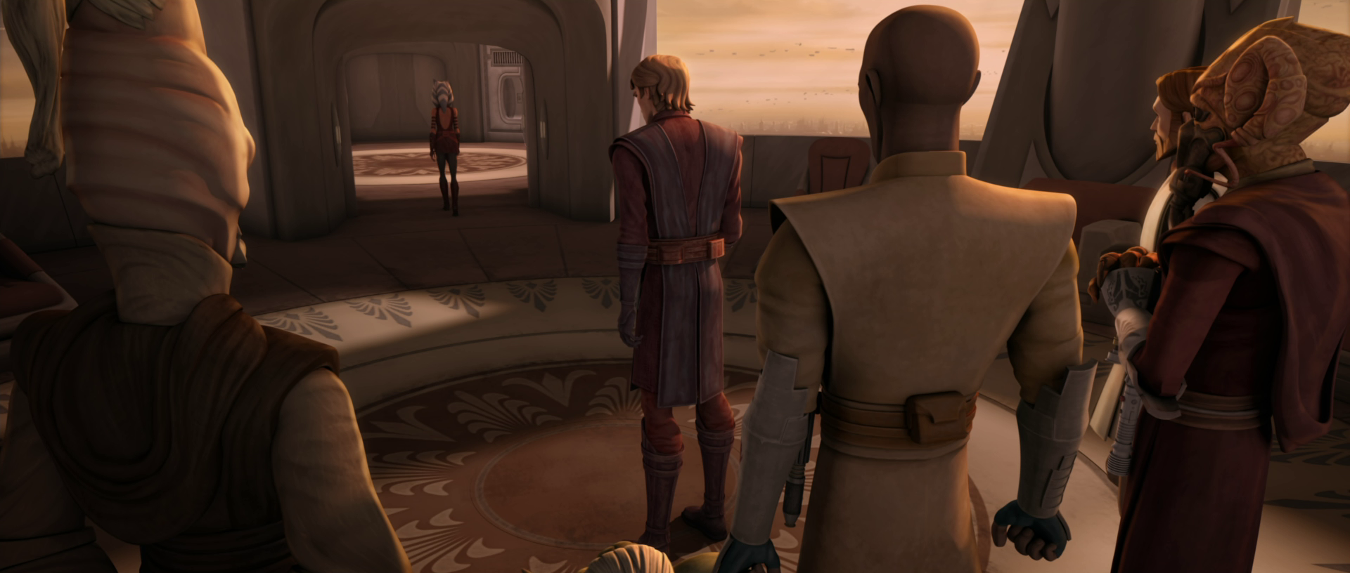 Windu held Skywalker's apprentice, Padawan Ahsoka Tano, as another rebellious Jedi.[4] When Tano was framed for treason, Windu supported the High Council's decision to revoke her status as a Jedi and turn her over to the Republic for a military tribunal.[55] While their verdict pained him,[56] Windu concurred with Tarkin's position on the matter—an internal Jedi trial would appear biased, and to protect Tano would be to defy the wishes of the Senate. He therefore felt that submitting Tano for trial was the only feasible option available to the Council. After her innocence was proven, however, Windu joined his colleagues in offering to welcome Tano back into the Order, and proclaimed her a greater Jedi because of her ordeal, which he observed as the great trial in her path to Jedi Knighthood. Tano refused to come back, a decision which surprised Windu and the Council.[55]