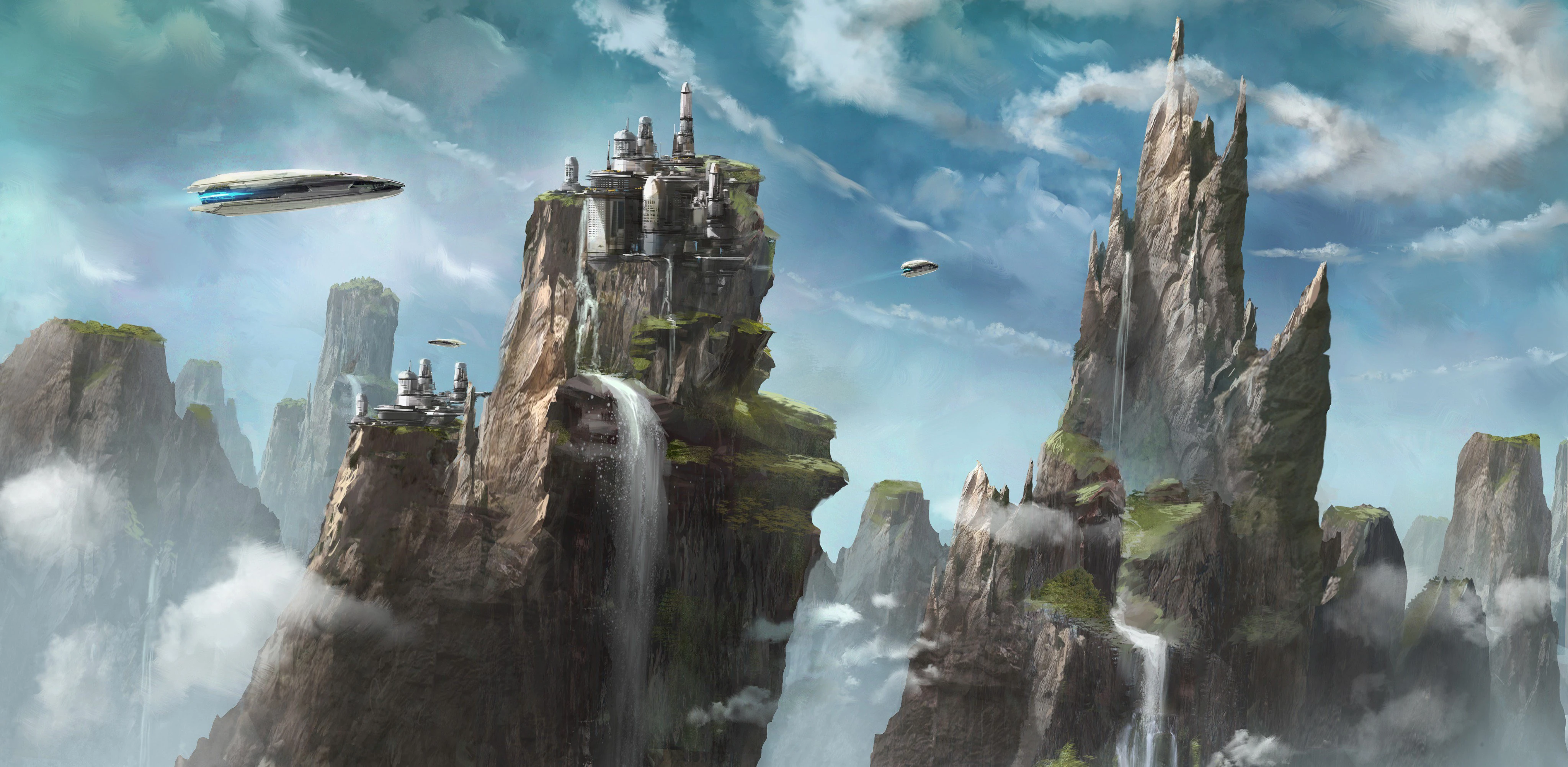 Located in the Makeb system on the edges of Hutt Space,[2] in a region of the galaxy far from major hyperlanes, Makeb was an oceanic planet[3] whose atmosphere featured enormous amounts of electromagnetic interference in its upper levels.[4] The planet's gravity, while below standard, possessed unique anomalies that resulted in the formation of many massive stone pillars across Makeb's surface. The pillars, which reached high above Makeb's cloud layer and were often large enough to contain entire cities on the plateaus and mesas that topped them, were riddled with complex cave systems. The pillars and caves were home to both Makeb's native wildlife and numerous deposits of minerals,[3] including the incredibly valuable isotope-5. Isotope-5 was a mineral found only on Makeb, and it was the reason behind Makeb's unique atmospheric and gravitational conditions, as the mineral had powerful warping effects on electromagnetic and gravitational fields.[14]