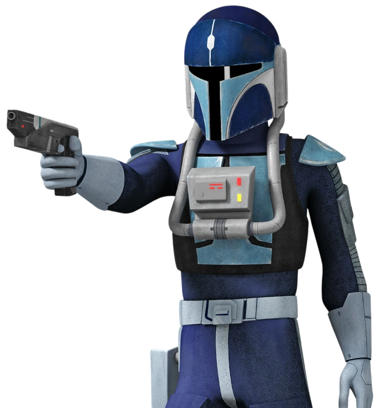 In the final years of the Republic, Jango Fett was considered the best bounty hunter in the galaxy.[91] The Mandalorian bounty hunter's reputation[47] attracted the attention of the Sith Order, and he was offered to become the clone template for the Grand Army of the Republic on Kamino.[92] Fett accepted the offer, and the Kaminoan cloners used his genetic material to create genetically modified clone troopers,[93] as well as two unaltered clones, Omega and Alpha,[94] the latter whom Jango would take as his son,[93] and name Boba Fett, teaching him their family's trade.[92] The Mandalorian armor Fett wore inspired that of the clone troopers. Additionally the Mandalorian Protectors also aided the Republic in training the clone troopers,[10] with at least one of Fett's clones, Bacara, being trained by an ex-Journeyman Protector.[11]